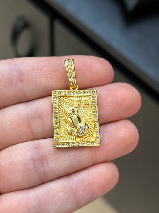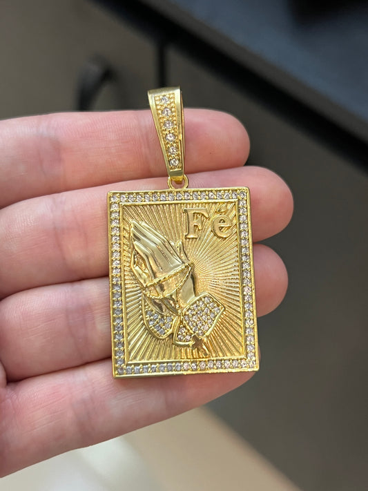 Pingente Placa Mão Fé Cravejado G (3x4cm) Banhado a Ouro 18K
