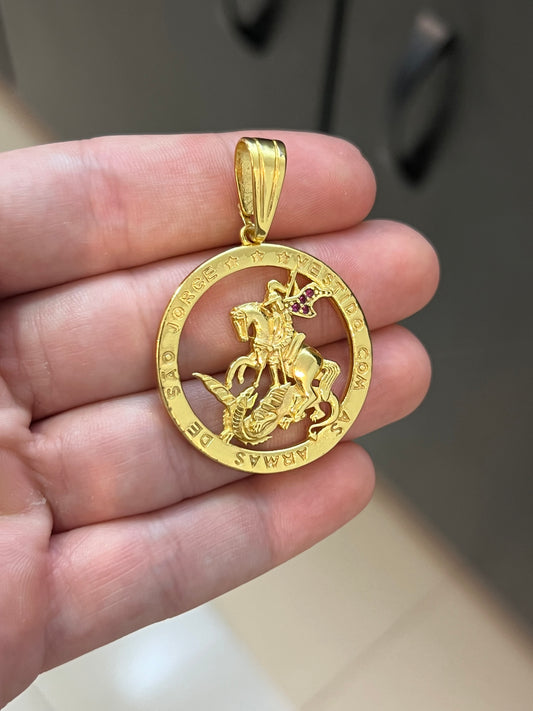 Pingente Medalha São Jorge P (2X2CM) Banhado a Ouro 18K