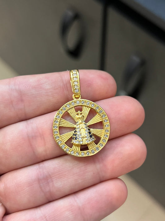 Pingente Medalha Nossa Senhora Vazada Cravejada M (2,5x2,5cm) Banhado a Ouro 18K