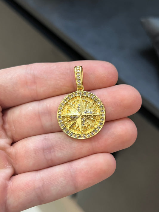Pingente Medalha Rosa dos Ventos Cravejada M (2,5x2,5cm) Banhado a Ouro 18K