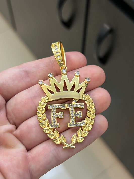 Pingente Coração Fé Vazado Cravejado G (3,7x5,5cm) Banhado a Ouro 18K