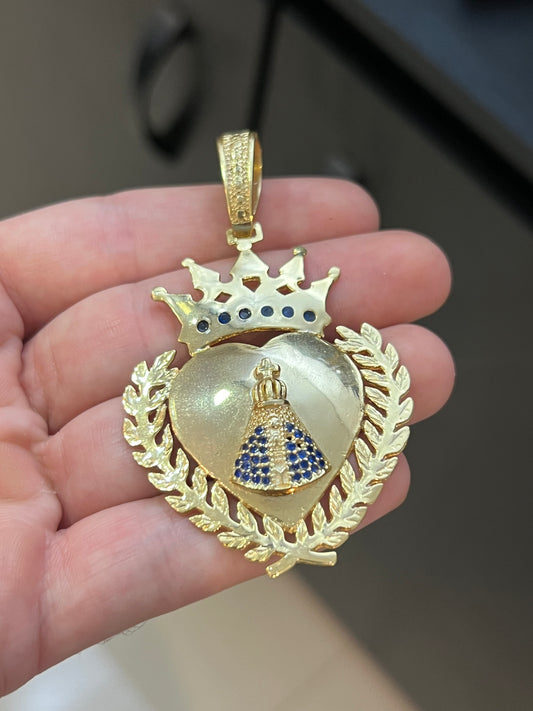 Pingente Coração Nossa Senhora Espelhado Cravejado G (4,5X6CM) Banhado a Ouro 18K