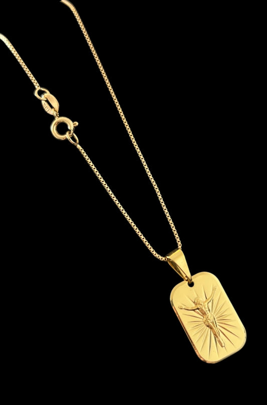 Kit Corrente Veneziana 1mm-70cm + Pingente Placa Jesus P (Banhado a Ouro 18K)