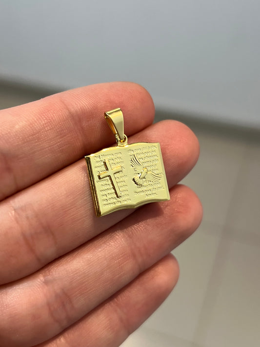 Pingente Bíblia com Pai Nosso P (2x1,6cm) Banhado a Ouro 18K