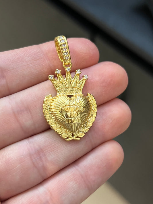 Pingente Coração Jesus Dono do Lugar Cravejado M (2,2x3,3cm) Banhado a Ouro 18K