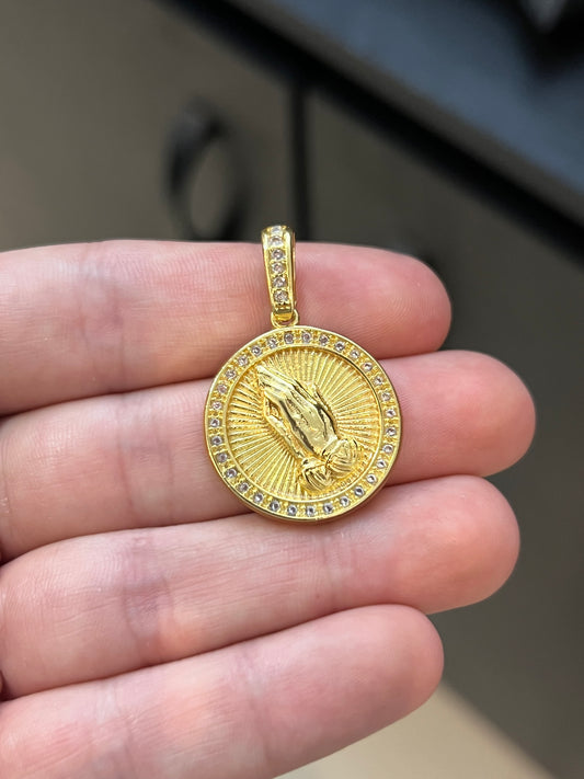 Pingente Medalha Mão Fé Cravejada M (2,5x2,5cm) Banhado a Ouro 18K