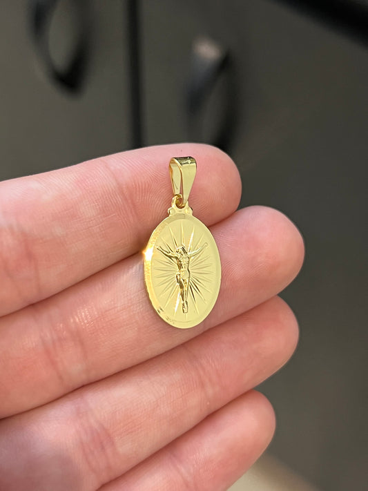 Pingente Jesus Cristo Oval P (1,5x2,4cm) Banhado a Ouro 18K