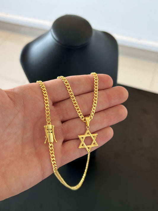 Kit Corrente Grumet pit bull 5mm - 70cm + Pingente Estrela de Davi P (Banhado a Ouro 18K)