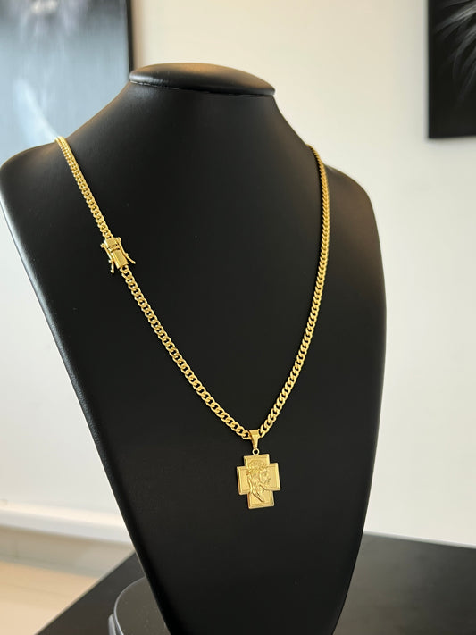 Kit Corrente Grumet pit bull 5mm - 70cm + Pingente Cruz larga face P (Banhado a Ouro 18K)