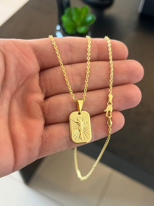 Kit Corrente Cadeado 2mm - 70cm + Pingente Medalha São Jorge P (Banhado a Ouro 18K)