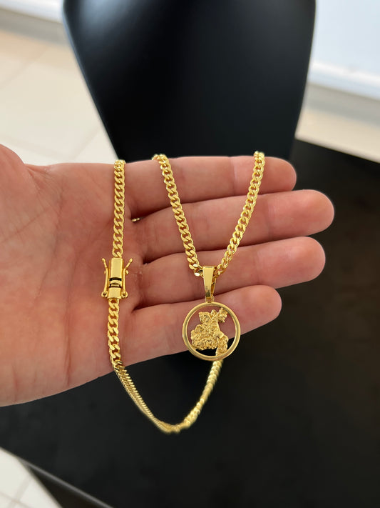 Kit Corrente Grumet pit bull 5mm - 70cm + Pingente Medalha são Jorge P (Banhado a Ouro 18K)
