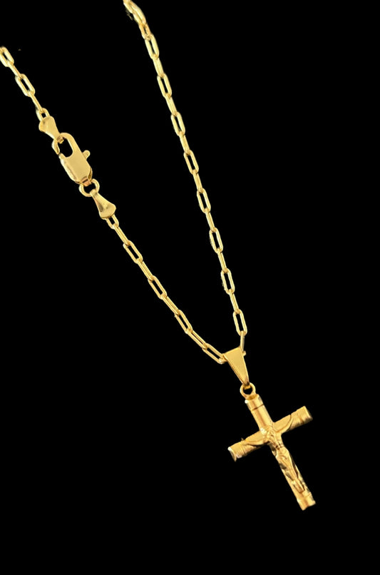Kit Corrente Cartie 2mm - 70cm + Pingente Crucifixo Jesus Cristo PP (Banhado a Ouro 18K)